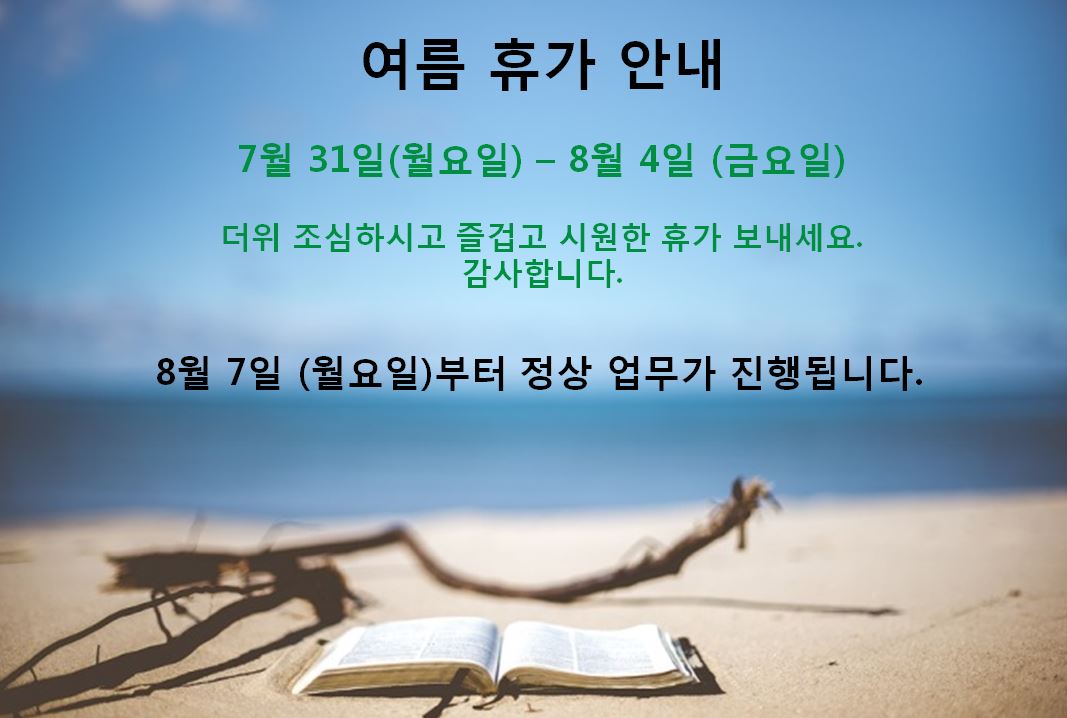 공지여름휴가 공지 / 7월 31일(월요일) ~8월 4일 (금요일) 등록일 : 2017.07.26조회수 : 6878 이전글 2017 POWER-GEN EUROPE 참가 2017.07.11 다음글 추석휴가 / 10월 2일(월요일) ~10월 9일 (월요일) 2017.09.26 목록보기