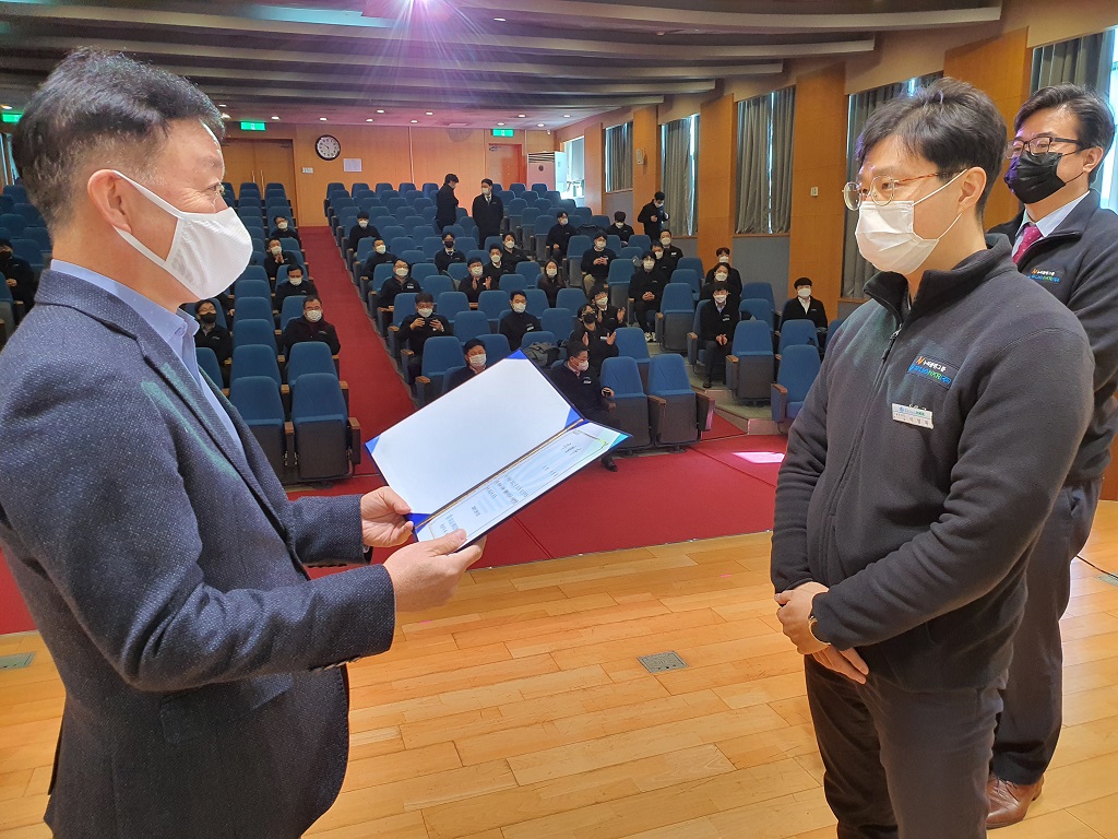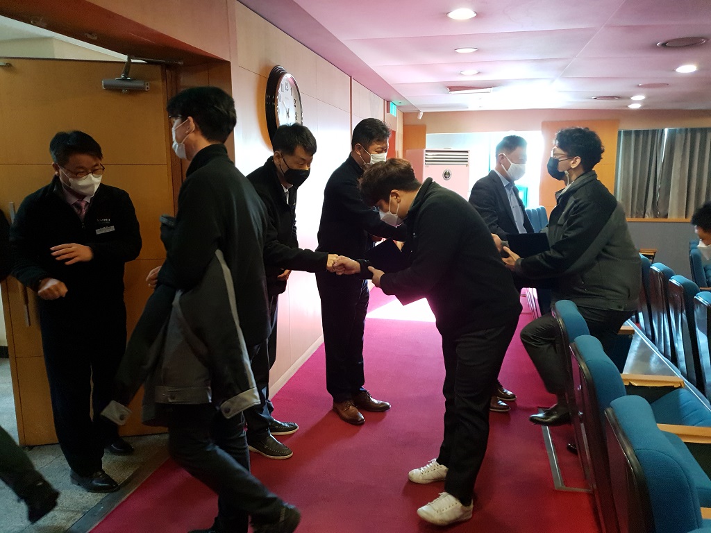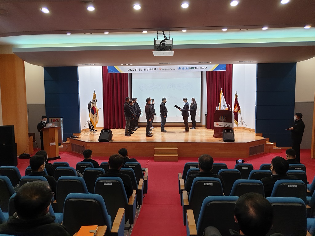 공지2020년 종무식 [2020.12.31] 등록일 : 2021.01.05조회수 : 6444 모두의 안전을 위해 거리두기, 발열체크, 소독 등 방역수칙을 준수하였으며,많은 인원의 참여을 위해 화상회의를 통해 진행하였습니다.허재정 대표님의 송년 및 신년사, 사령장 전달식, 특허출원포상 등이 있었습니다. 이전글 [언론/보도] 누리플랜그룹 유니슨HKR, 사내바자회 수익금 600만원 기부 [2020.12.24] 2020.12.24 다음글 2021년 시무식 [2021.01.04] 2021.01.05 목록보기